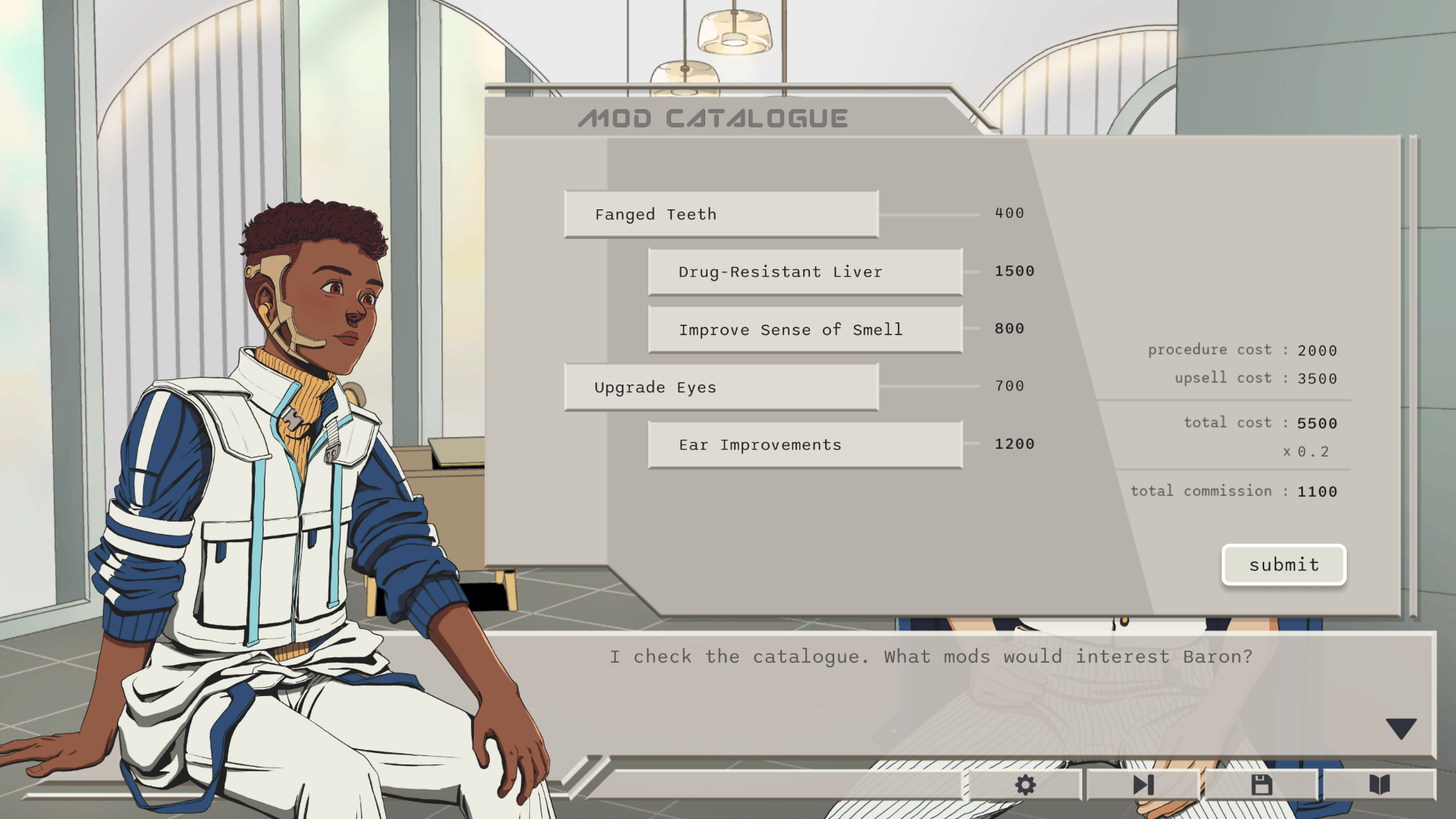Clients from all walks of life visit the clinic. As you speak with them and uncover their secrets, you'll have to decide if they should get the mods they seek. Choose between morals and your bottom line, and impact the client’s future as well as your own.